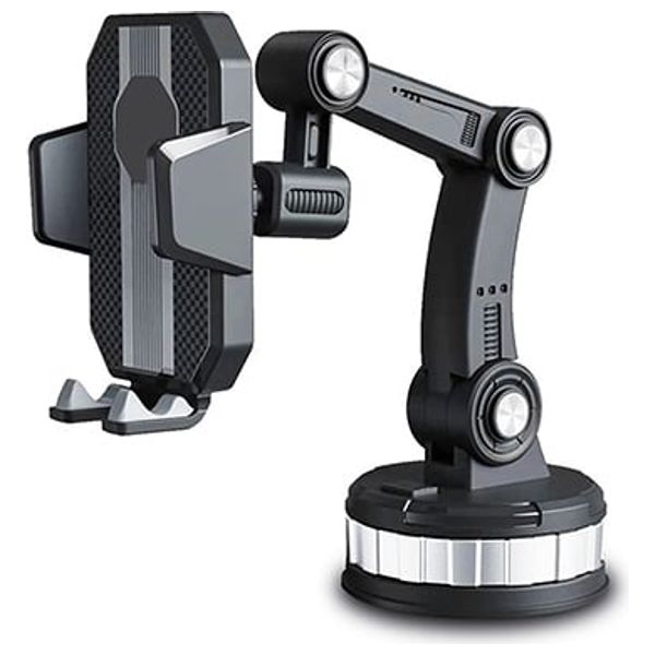 حامل موبايل للسيارة بتصميم ذراع متعدّد المفاصل يتيح ضبط الطول والزاوية بحرّية، وقاعدة شفط كبيرة بجل لاصق تمنح ثبات قوي على الزجاج الأمامي أو الطبلون. المشبك يمسك بضغط زر واحد ويصلح لمعظم الهواتف الذكية، مع قواعد سفلية تحمي الجهاز من الاهتزاز