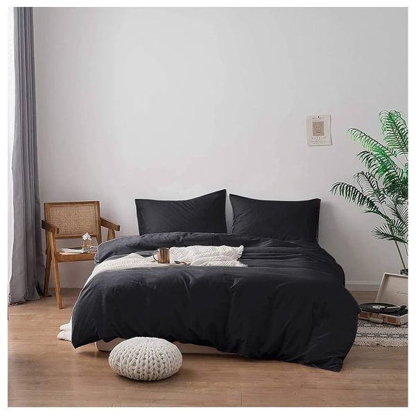 طقم نوم المزدوج الأسود بتصميم عصري وملمس ناعم. مصمم للأسرة المزدوجة، يوفر راحة دائمة وسهولة في العناية