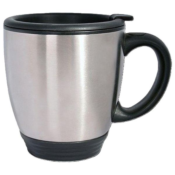 كوب داخله بلاستيكي وخارجه فولاذي، يوفر متانة وسهولة التنظيف، تصميمه المدمج مناسب للاستخدام اليومي مع قبضة مريحة