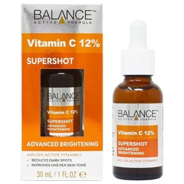 سيروم فيتامين سي 12% من بالانس اكتيف فورمولا يقدم تفتيحاً متقدماً مع 12% من فيتامين C النشط لتقليل البقع الداكنة وتوحيد لون البشرة. عبوة 30 مل بقطارة لتوزيع دقيق وخفة الامتصاص. استخدمي بضع قطرات على وجه نظيف صباحاً ومساءً، وتجنب منطقة العين، واستخدمي واقي الشمس خلال النهار.