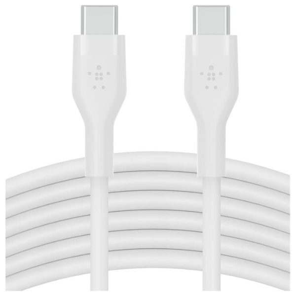 كابل Belkin USB-C إلى USB-C الأبيض يتميز بتصميم سيليكون مرن يعزز المتانة وسهولة الاستخدام بدون تشابك. بطول 3 أمتار يمنحك حرية الشحن واستخدام الجهاز بلا قيود. يدعم الشحن السريع ونقل البيانات بين أجهزة USB-C ومتوافق مع الهواتف الذكية والأجهزة اللوحية وأجهزة الكمبيوتر المحمولة. صُنع ليبقى موثوقاً بمتانة تتحمل أكثر من 25000 انحناءة.