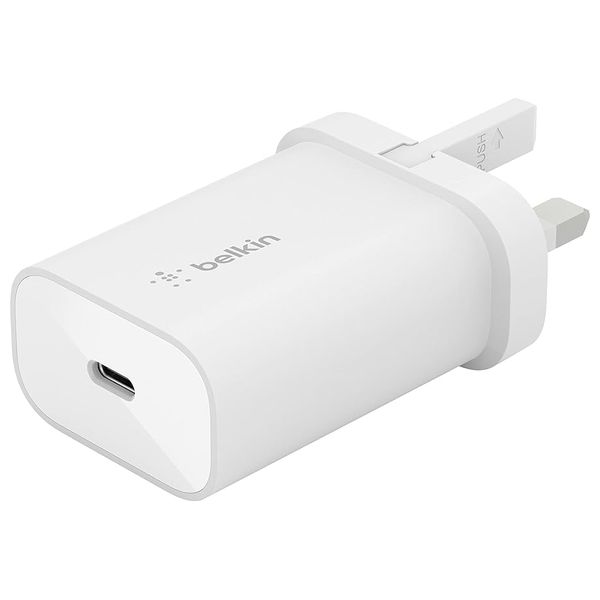 شاحن حائط Belkin BoostCharge بمنفذ USB-C وقدرة 25 واط، يدعم الشحن السريع وآمن بفضل تقنية USB-C PD.