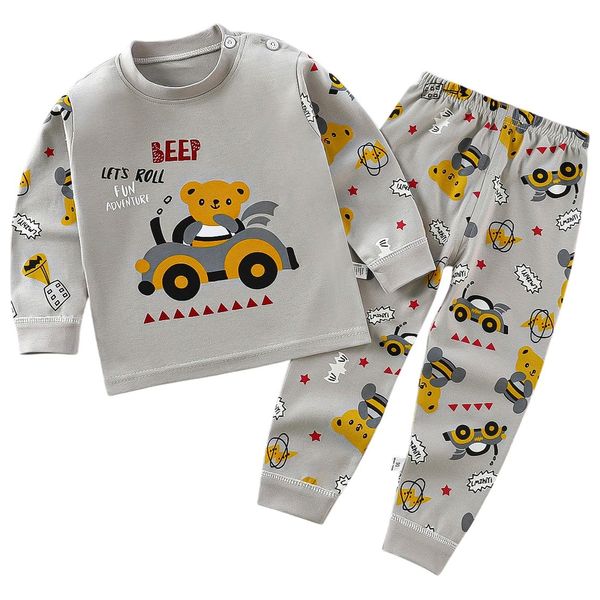 طقم بيجاما قطني مريح من قطعتين للأولاد، مزين بدب لطيف يقود سيارة على خلفية رمادية. تصميمه المريح وسهل الارتداء يوفر الراحة أثناء النوم وطوال الليل