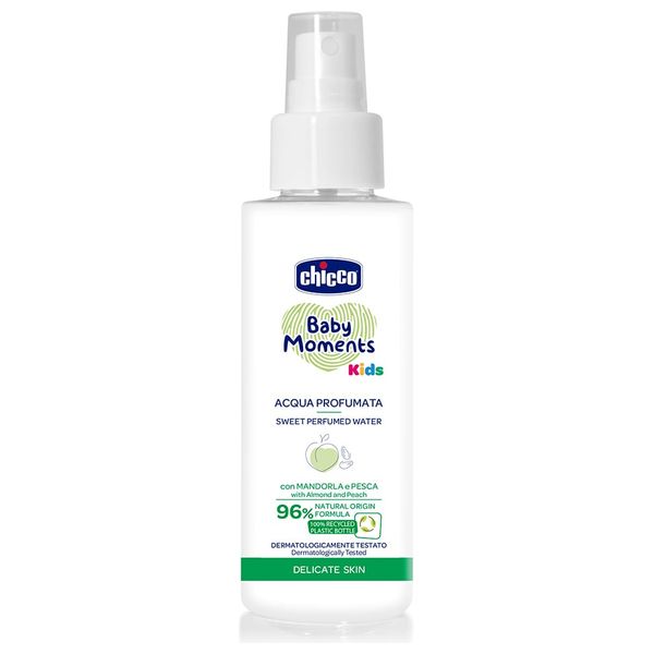 عطر ماء شيكو كيدز عطر لطيف ومناسب للبشرة الحساسة لدى الأطفال. مصنوع في إيطاليا، يحتوي حتى 96% من المكونات ذات الأصل الطبيعي، وخالٍ من SLS/SLES والبارابين والصبغات والكحول. تركيبة مع مستخلصات اللوز والخوخ لترطيب البشرة وتهدئتها مع الحفاظ على الرقم الهيدروجيني الطبيعي للبشرة. مُختَبَر طبياً ومضاد للحساسية، وتأتي العبوة من البلاستيك المعاد تدويره 100%.