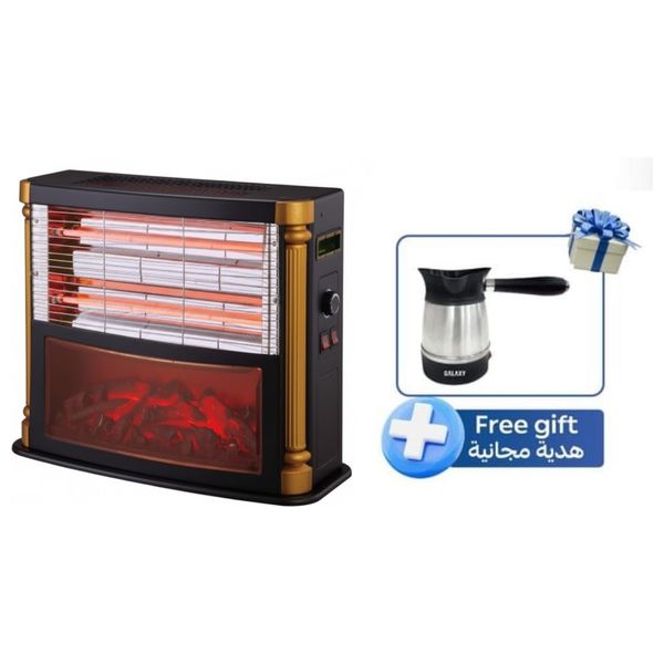 تجمع باقة جلاكسي بين سخان إشعاعي بقوة 2000 واط لون بيج (GAH-111) ودلة قهوة فضية بقوة 600 واط (GAC-76). يوفر السخان دفئاً سريعاً ومتساوياً بفضل أربعة عناصر تدفئة ويعمل بهدوء، مما يجعله مناسباً لغرف النوم والمناطق المعيشة والمكاتب ومناطق الضيوف. تشمل ميزات الأمان إيقافاً تلقائياً عند الإمالة والارتفاع في الحرارة، وتستخدم مواد مقاومة للحرارة لضمان الاستخدام الآمن منزلياً. دلة القهوة سعة 0.5 لتر وبناء من الفولاذ المقاوم للصدأ وقاعدة دوارة 360° لسهولة الصب والخدمة. تُبرز الباقة السلامة والكفاءة مع شهادات CE وRoHS وWEEE وEAC. تتضمن الباقة دفئاً وقهوة أصلية إضافة إلى هدية مجانية من دلة القهوة.