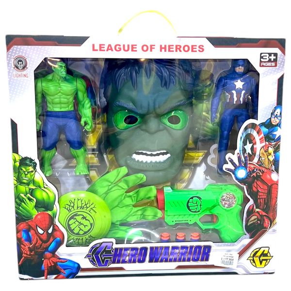 سيت هالك الاخضر مع ماسك وكفوف مسدس طلق اسفنجي مع شخصية كابتن امريكا