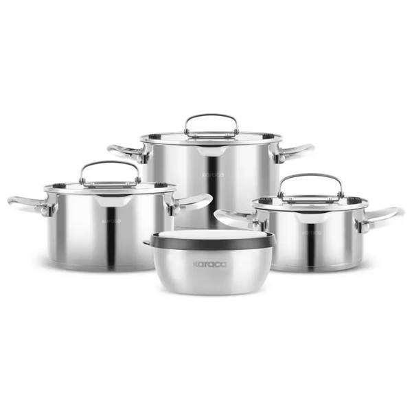مصنوعة من الفولاذ 18/10 وتتمتع بسطح لامع يسهل التنظيف. التصميم القابل للتكديس مع مقابض قابلة للطي يوفران مساحة في المطبخ، وأغطية مصفاة مع حامل سيليكون على غطاء زجاجي لتسهيل التصريف. متوافقة مع مواقد الحث والغاز والكهرباء والسيراميك؛ آمنة للاستخدام في الفرن بدون أغطية، وتضم أواني 16 سم بسعة 1.4 لتر، 20 سم بسعة 3.1 لتر، 24 سم بسعة 5.9 لتر، وحاوية تخزين 12 سم.