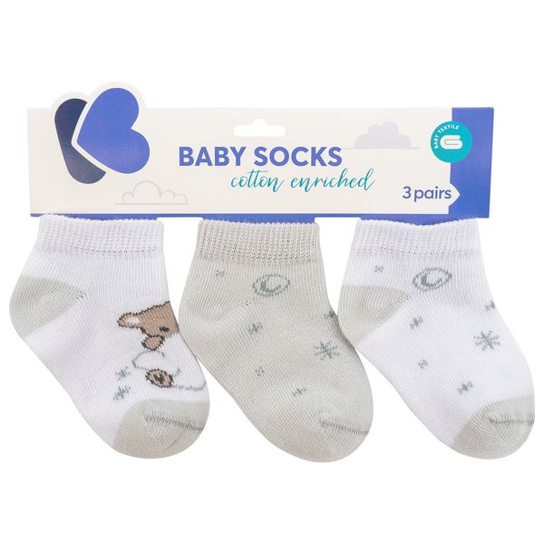 جوارب أطفال من كيكا بوو بتصميم دريم بيغ بيج مناسب للصيف. مصنوعة من نسيج تنفّسي ومرن (85% قطن، 10% بولي أميد، 5% إيلاستان)، العبوة ثلاثية الألوان البيج الناعمة تعزّز راحة قدم الرضيع. صُنِعت في الاتحاد الأوروبي بجودة موثوقة.