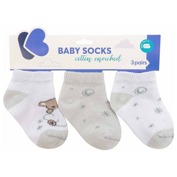 جوارب أطفال مصنوعة من القطن المُغذّى بلون بيج مقاس 0-6 أشهر. حزمة من 3 أزواج توفر راحة وتنفساً مع كعب مطاطي مرن لتناسب الصيف في العراق.