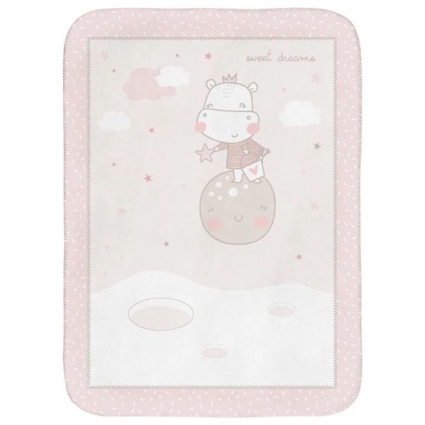 بطانية أطفال من علامة كيكا بوو تقدم تصميم Hippo Dreams باللون الوردي. مصنوعة من البوليستر الناعم وهي بطانية مناسبة لاستخدام طوال السنة بمقاس 110×80 سم وبوزن نحو 920 جرام، مثالية للسرير أو ديكور غرفة الطفل.