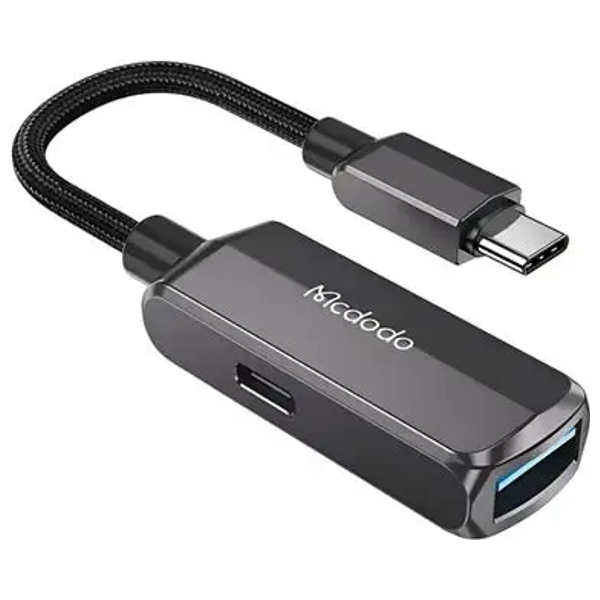محول متعدد المنافذ من Mcdodo من USB-A إلى USB-C، يدعم OTG، الشحن السريع ونقل البيانات بسرعة عالية، مثالي لأجهزة iPhone، iPad، MacBook وأجهزة USB-C الأخرى.