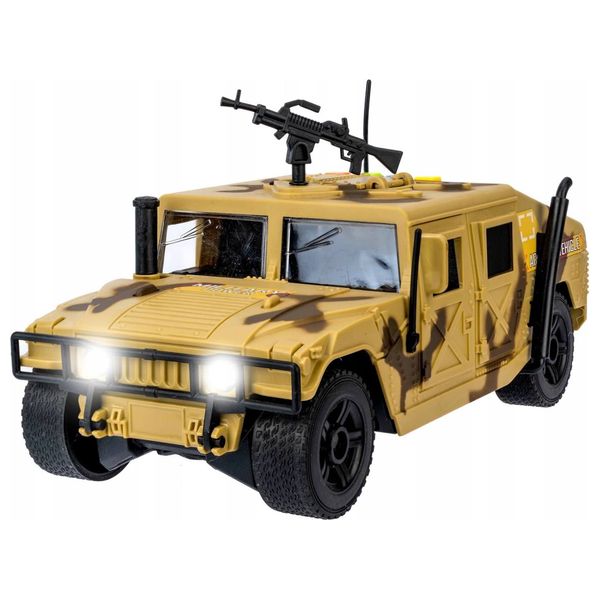 مركبة لعب ومعدنية متينة مصممة ليناسب اللعب التمثيلي العسكري لدى الأطفال. تعمل بنظام الاحتكاك وتستمر بالحركة بعد الدفع. يوجد مدفع دوّار 360° على السطح، مع أزرار لتشغيل الأضواء والأصوات الواقعية. البطاريات الثلاثة مرفقة كاختبار. تتميز بعجلات مطاطية تتيح اللعب على الرمل والتضاريس الوعرة، وتفتح الأبواب وغطاء المحرك لتعزيز اللعب التمثيلي. مناسبة من عمر 3 سنوات فما فوق ومثالية لإعادة تمثيل المغامرات بلمسة واقعية.