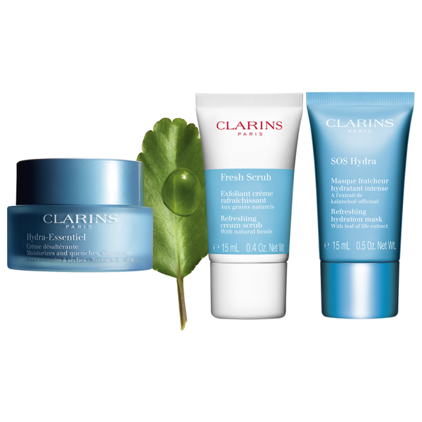 مجموعة العناية بالبشرة, للحصول على ترطيب مثالي في جميع الأوقات, تتكون: مرطب الوجه هيدرا ايسنشال للبشرة العادية الى الجافة بحجم 50 مل. رغوة تنظيف موسانت دو بحجم 30 مل. قناع العناية بالوجه اس او اس هيدرا بحجم 15 مل.