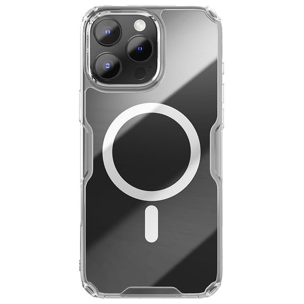 كفر نيلكن Nature TPU Pro Magnetic لهاتف آيفون 16 برو ماكس يوفر حماية كاملة $360^{\circ}$ مع دعم MagSafe، مع الحفاظ على المظهر الأصلي للجهاز. مصنوع من البولي كربونات الشفافة وTPU المرن، ويتميز بتقنية لمنع الخدوش، مع وسائد هوائية مدمجة في الزوايا الأربع لامتصاص الصدمات بفعالية.