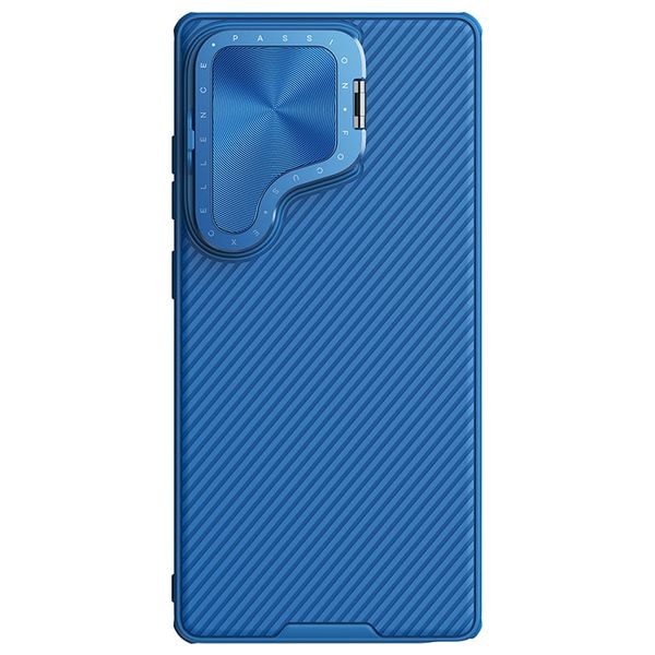 كفر نيلكن CamShield Prop لهاتف Samsung Galaxy S25 Ultra باللون الأزرق يحتوي على غطاء عدسة CD لامع قابل للطي يعمل أيضًا كحامل للهاتف. السطح مطلي بزيت لمسي لراحة اليد ويمنع بصمات الأصابع وبقع الزيت. يحتوي على وسائد هوائية في الزوايا الأربع لمقاومة الصدمات.