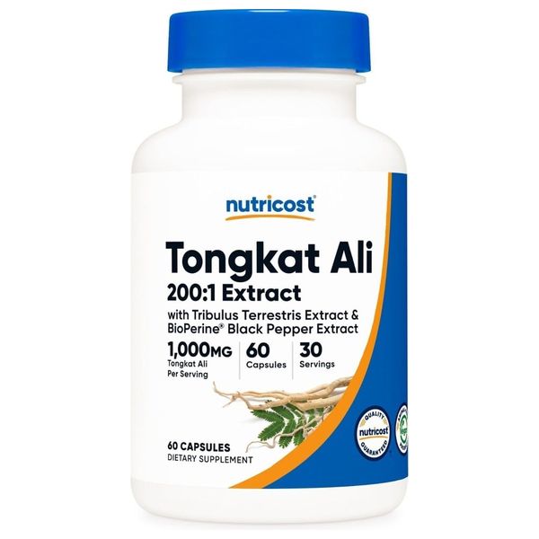 مكمل غذائي يحتوي على 1000 ملغ من تونغكات علي لكل جرعة في عبوة تحتوي على 60 كبسولة. يجمع هذا المستخلص بين تريبولوس تيريستريس وبيوبيرين لتعزيز الامتصاص. الكبسولات نباتية، غير معدلة وراثيًا، وخالية من الغلوتين