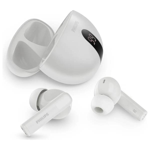 سماعات أذن لاسلكية من Philips مزودة بميكروفونين بتقنية الذكاء الاصطناعي لالتقاط الصوت بدقة مع تقليل الضوضاء لمكالمات واضحة. تأتي بحافظة شحن صغيرة الحجم وسهلة الحمل، مع مدة تشغيل إجمالية تصل إلى ٢٠ ساعة (٦ ساعات بشحنة كاملة + ١٤ ساعة إضافية من الحافظة مع إيقاف ANC). تدعم الشحن السريع: ١٥ دقيقة شحن = ساعة استخدام، مع منفذ USB-C للشحن السريع والمريح.
