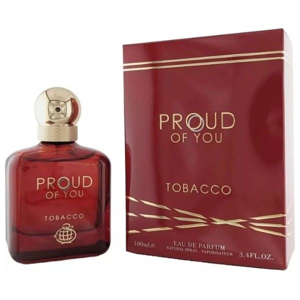 عطر Proud Of You Tobacco من Fragrance World عطر للجنسين بسعة 100 مل. زجاجة حمراء داكنة وتغليف أنيق يعكسان طابع التبغ القوي، ما يجعلها خياراً عملياً للمناسبات النهارية والليلية. عطر جريء وأنيق يبرز نوتة التبغ بحضور دافئ يدوم طويلاً.