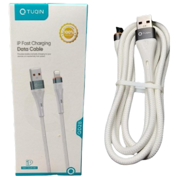 كابل USB إلى Lightning باللون الأبيض يدعم تيار إخراج 3A والشحن السريع للأجهزة المزودة بمنفذ Lightning مثل iPhone وأجهزة Apple الأخرى. يتميز بتصميم متين وعملي،