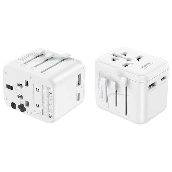 يأتي مزودًا بمقابس UK وEU وUS وAU، ليمنحك توافقًا سلسًا في جميع أنحاء العالم ، يحتوي على منفذي إخراج Type-C وUSB لتتمكن من شحن جهازين في نفس الوقت ، تصميمه الأبيض المدمج والخفيف الوزن يتميز بمقبس UK مريح لا يغطي زر التشغيل، مما يتيح استخدامه بيد واحدة بسهولة، مثالي للمسافرين، فهو يدعم الشحن في أكثر من 200 دولة، مما يجعله رفيقًا أساسيًا في السفر لجميع أجهزتك الإلكترونية