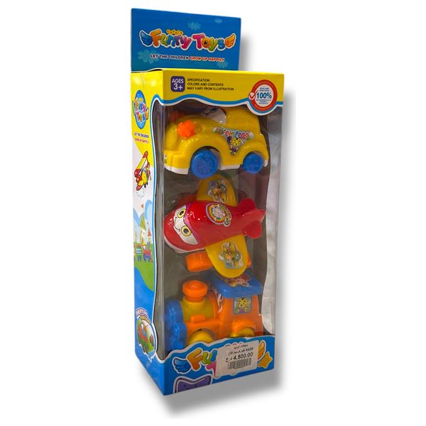 سيت طيارة وسيارة وقطار بلاستيك ملونه يدوي