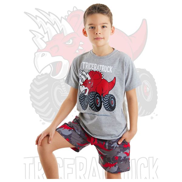 طقم من قطعتين. قميص جيرسي قطني، تي شيرت رمادي بمزيج ألوان. طبعة ديناصور. الشورت مصنوع من قماش قطني، بنقشة مموهة تغطيه بالكامل. جيبان جانبيان. حزام خصر مطاطي وأربطة. جميع منتجات MSHB&G مصنعة وفقًا لإرشادات سلامة الأطفال. خضعت للفحص بواسطة أجهزة كشف المعادن. الخامة: الجزء العلوي: 65% قطن، 30% بوليستر، 5% إيلاستين - الجزء السفلي: 100% قطن. مدة الغسيل: يُغسل على درجة حرارة 30 مئوية في دورة الغسيل الرطب. يُغسل عكسيًا مع ألوان مماثلة. لا تستخدم المبيضات. لا تستخدم التنظيف الجاف. لا تستخدم المجفف.