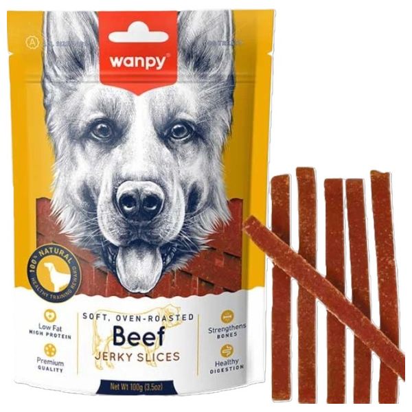 وجبة صحية ولذيذة مُصممة كمكافآت تدريب وتناولها كوجبة خفيفة يومية. شرائح اللحم مطبوخة بالفرن وتوفر بروتيناً عاليًا ودهونًا منخفضة لدعم الهضم الصحي. تحتوي على مكونات طبيعية ولا تحتوي على مكونات صناعية