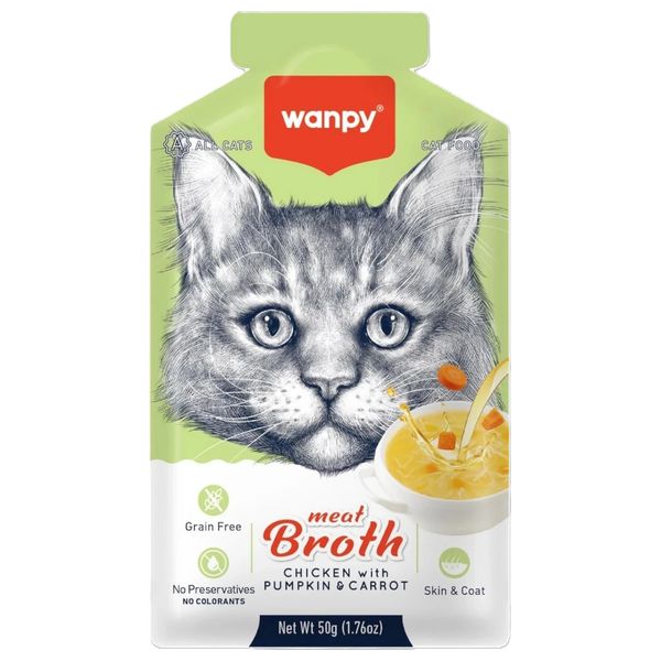 وانبي وجبة خفيفة للقطط بنكهة مرق اللحم والدجاج مع اليقطين والجزر - 50 غم