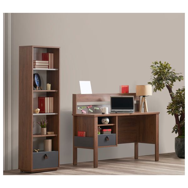 The Albino Debri study desk is made of E1 standard particleboard, is environmentally friendly and safe for health, and features open shelves and organizational space for a home office.