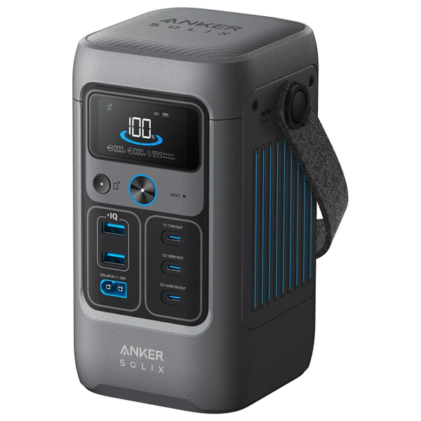 The Anker Power Station 200W (SOLIX C200) is a portable power station with a 60,000mAh capacity, delivering 200W (192Wh) of continuous power. It features a 140W bidirectional USB-C fast charging port and five device charging ports. Compact and lightweight, it is 39% smaller than comparable power stations and can recharge up to 80% in just 80 minutes. Equipped with LiFePO₄ batteries for long-lasting, reliable power.