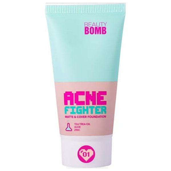 Beauty Bomb Matte Foundation, a formula enriched with tea tree oil and zinc, helps even out skin tone and conceal imperfections, giving the skin a matte, non-shiny finish