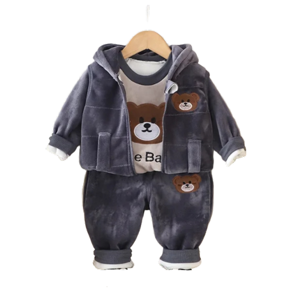 Three-piece outdoor tracksuit, made from soft velvet fabric. To maintain fabric quality, please wash using the synthetic fabrics program.