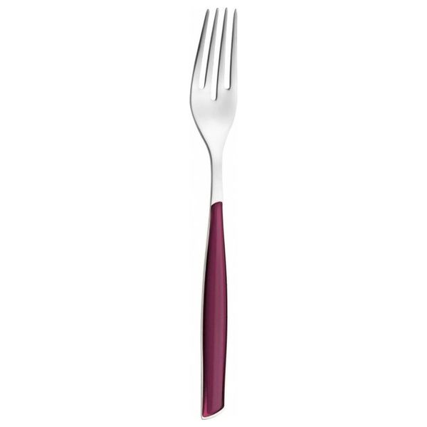 High-quality 18/10 stainless steel table fork from the Glamour range, featuring a transparent colored SAN resin handle and a 2.5 mm thick finish. Dishwasher-safe and designed to mix with other Glamour colors for a vibrant table setting. Includes 6 pieces for a complete place setting.