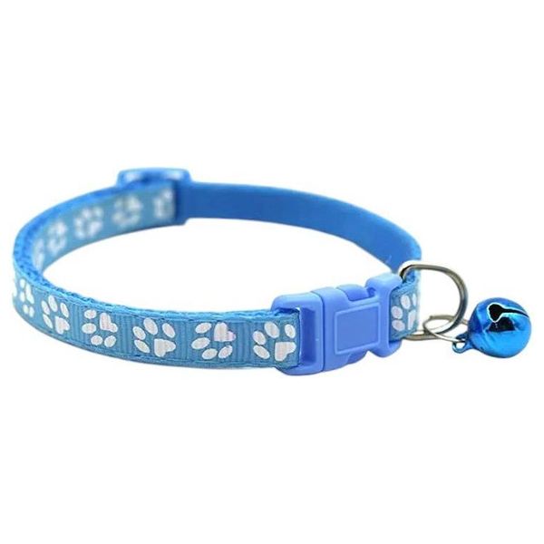 Durable nylon adjustable cat collar with secure plastic buckle, small bell, and metal D-ring for attaching ID tag or leash
