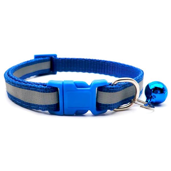Durable, adjustable nylon cat collar with secure plastic clasp/lock, small bell to alert you when your cat moves, metal loop for adding ID tag or leash attachment