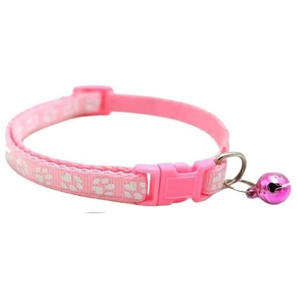 Durable nylon adjustable cat collar with secure plastic buckle, small bell, and metal D-ring for attaching ID tag or leash
