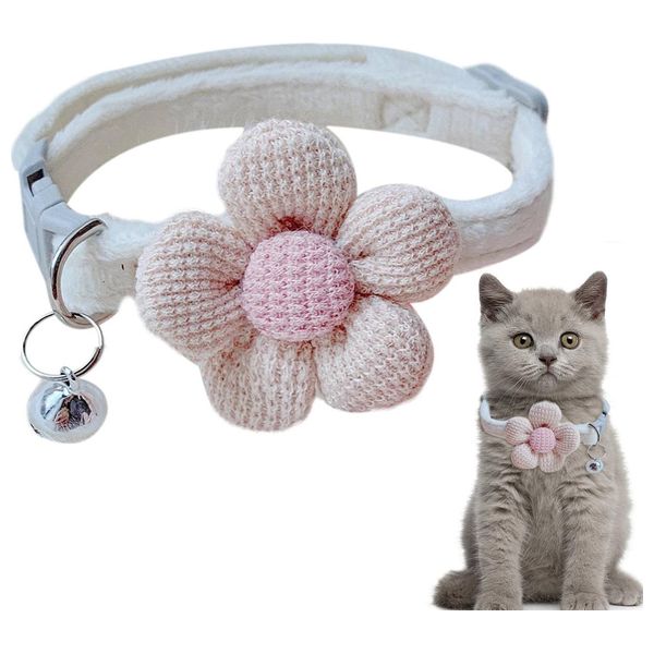 Light Pink Cat Collar with Bell, Light and Safe for Cats, Adjustable 7.8-11.8 Inch with Quick Lock, Decorated with Fixed Flower and Bell to Easily Track Cat Movement