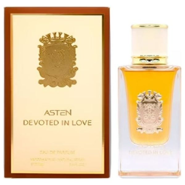 Devoted In Love by Asten is a unisex Eau de Parfum that blends oriental and western notes for a balanced fragrance. It opens with bright lemon, reveals a creamy heart of panna cotta with rum and orange blossom, and rests on a vanilla base. Inspired by traditional Arabesque calligraphy, this scent offers a distinctive, refined character suitable for everyday wear and special occasions.