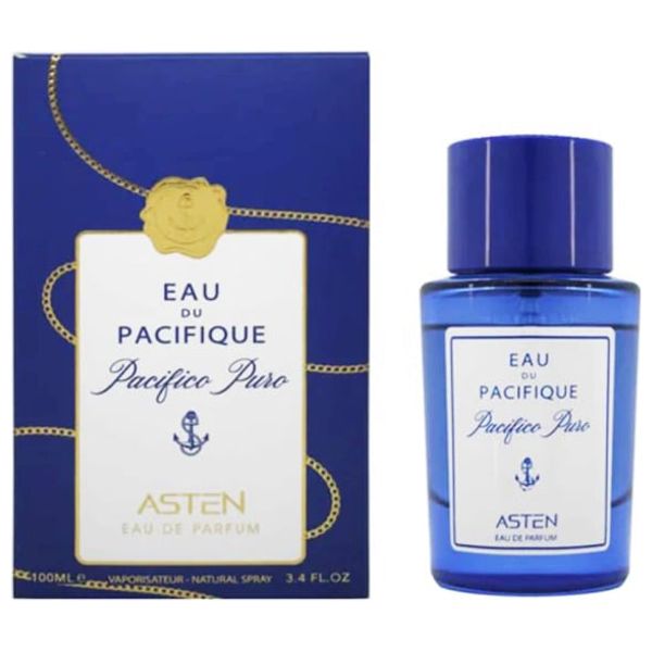 Eau Du Pacifique is a unisex fragrance by Asten that opens with green almond, star anise, and orange. The heart reveals white peach, ylang-ylang, and jasmine. The base blends bourbon vanilla, white musk, and cedarwood, delivering a balanced, versatile aroma suitable for daily wear.