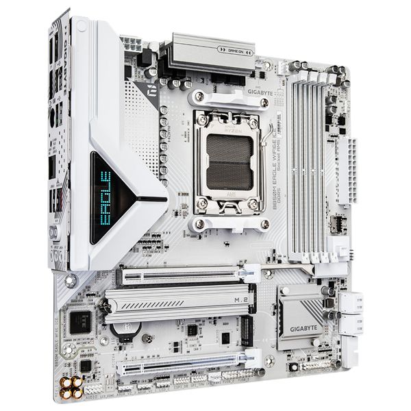 The Gigabyte B850M EAGLE WiFi6E ICE micro-ATX motherboard supports AMD Ryzen™ 7000, 8000, and 9000 series processors via the AM5 socket. It features DDR5 memory support up to 8200MHz (OC) across four DIMM slots (up to 256GB), fast PCIe 4.0/5.0 M.2 storage slots, and a PCIe x16 slot for graphics cards. Equipped with Realtek 2.5GbE LAN, Wi-Fi 6E, Bluetooth 5.3, HDMI and DisplayPort outputs supporting up to triple-display setup. Additional features include Q-Flash Plus for easy BIOS updates, RGB support, and Smart Fan for temperature and fan management.