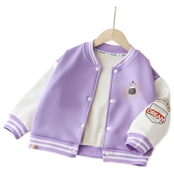 This stylish girls' jumper from Variety features a sporty design, a purple color with white sleeves, and a soft, warm fleece lining for comfort and warmth. It has snap buttons for easy dressing and elasticated cuffs and hem for a comfortable fit.