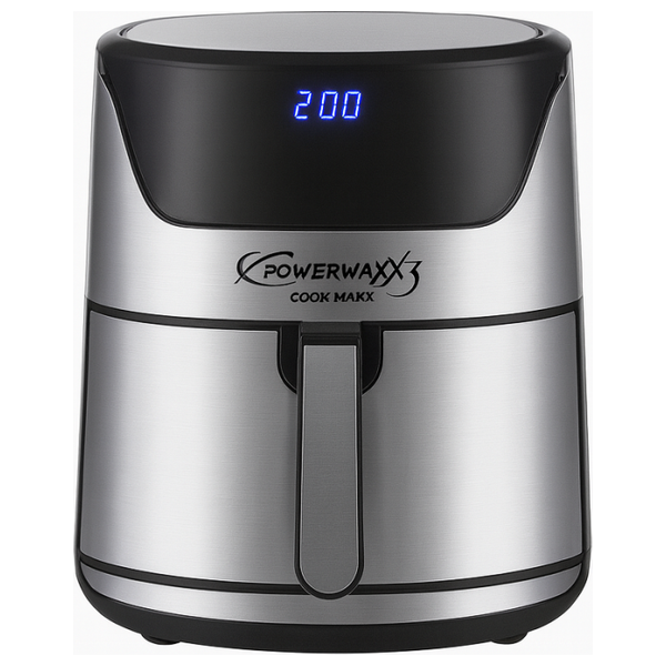 Powered by 1800 watts, it prepares healthy, crispy food without using oil. It features a digital display for precise time and temperature control, and a large capacity suitable for families. Modern stainless steel design