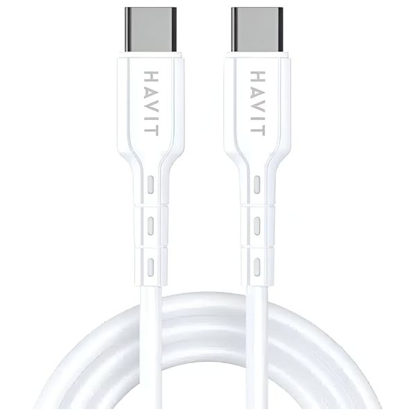 The Havit USB-C to USB-C cable delivers fast charging and data transfer for USB-C devices. Supports up to 60W Power Delivery. Length of 1.6 meters provides flexible reach. Finished in white for a clean look, compatible with MacBook Pro 13 and other USB-C laptops and devices.