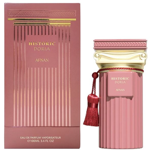 Historic Doria by Afnan is a unisex Eau de Parfum introduced in 2022. It offers a bold, refreshing balance suitable for daily wear and evening occasions. The 100 ml bottle features a pink ribbed glass body, a gold-toned cap, and a decorative tassel, delivering a distinctive, collectible presentation.