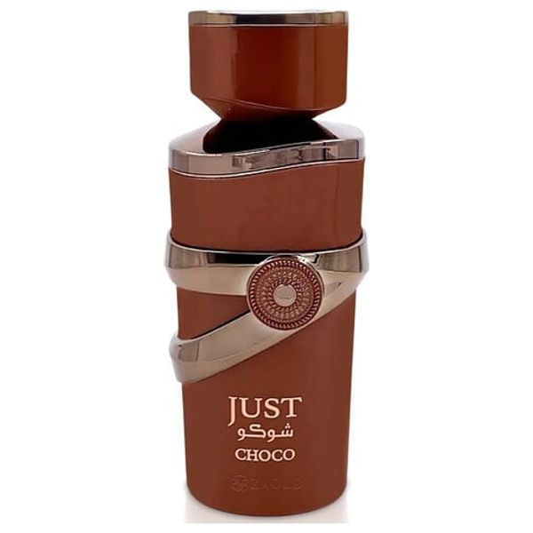 Just Choco is a unisex Eau de Parfum by Fragrance World featuring vanilla and chocolate top notes, a creamy milk heart, and a musk base. The 3.38 oz bottle offers a balanced gourmand fragrance for everyday wear and evening occasions. Designed for both men and women seeking a warm, inviting aroma.