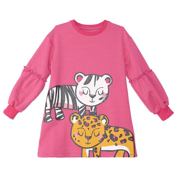French terry cotton girl dress. Zebra and leopard print on. All MSHB-G products are produced within kids safety guidelines and dedected by needle dedectors., Material 100% Cotton, Washing ins. The print detail on this product may fade in the washing machine. Machine wash on a low temperature on a delicate programme or by hand without rubbing and tumble dry. Iron inside out at a low temperature.