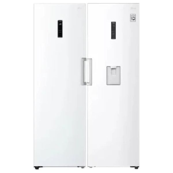 LG twin refrigerator with separate fridge and freezer doors offers organized storage with a total capacity of 708 liters (384 L fridge + 324 L freezer). The white finish suits modern kitchens, while the dual-door design provides convenient access to each compartment. Models included: GC-F511EQDM (fridge) and GC-B514EQFM (freezer).