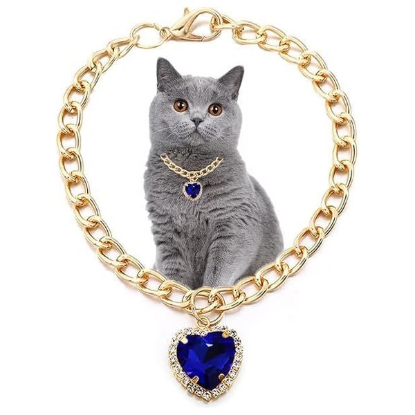 An elegant collar with a gold chain and a crystal heart pendant that adds a touch of sparkle to your cat's look. It features a secure lobster clasp for everyday wear and special occasions.