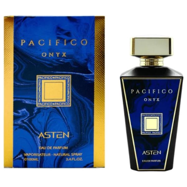 Pacifico Onyx by Asten is a refined Eau de Parfum for men, delivering a balanced blend of marine freshness, woody depth, and a warm musk finish. Opening with breezy marine notes and bergamot, the fragrance reveals a woody heart with subtle florals and settles into musk and sandalwood. With long-lasting performance, it suits daily wear as well as evening occasions. The 100 ml bottle presents a bold blue and gold presentation.