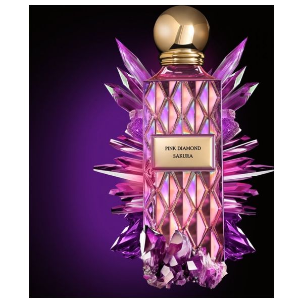 Pink Diamond Sakura by Ibraheem Al Qurashi offers a luminous floral fragrance opening with peony, orange blossom, and mandarin. The heart reveals rose, lily, and cherry blossom, while sandalwood, white musk, and amber form a warm, lasting base. The 150 ml bottle features a candyfloss-toned glass reflecting its bright, feminine character, suitable for everyday wear and special occasions.